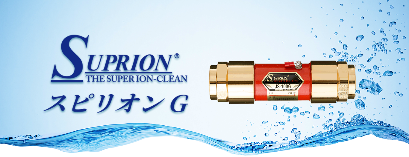 『静電気応用活水装置スピリオン』は、水が流れる力を利用して水中に静電気を薄膜状に放射する装置。
